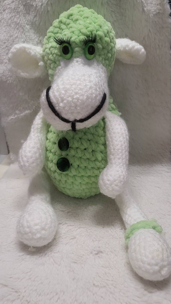 Ein Zuckersüsses Schaf in Hellgrün sucht neues Zuhause.