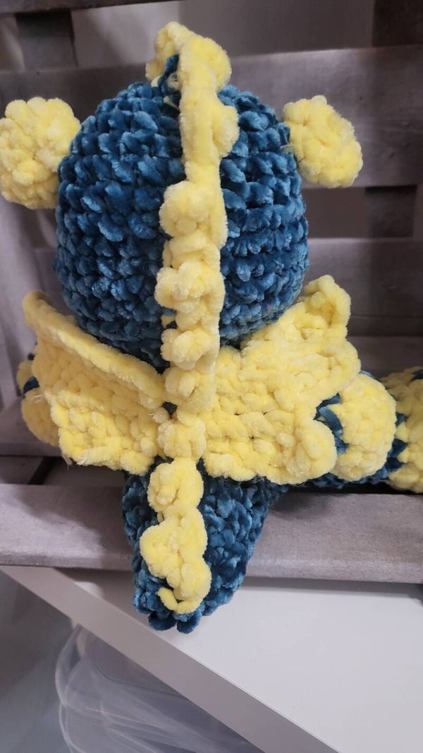 Süsser kleiner Drache in petrol gelb Höhe 20 cm mit aufgestickten Augen .